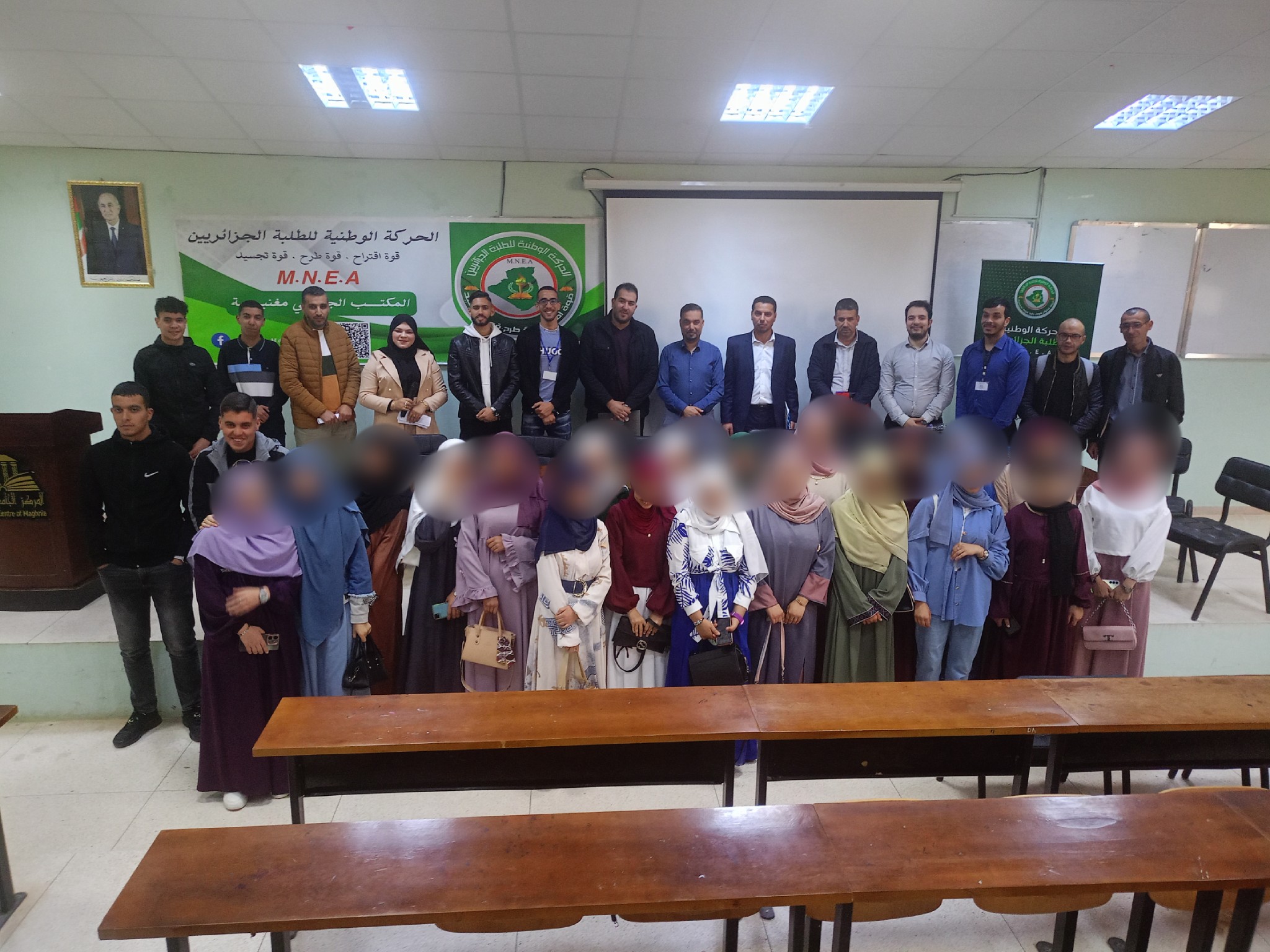 نظمت اليوم الحركة الوطنية للطلبة الجزائريين Mnea مغنية بالتنسيق مع المركز الجامعي مغنية University Centre of Maghnia أبواب مفتوحة على الجامعة لصالح تلاميذ الأقسام النهائية المقبلين على امتحان شهادة البكالوريا لثانوية الشهيد محمداوي أحمد – بني بوسعيد Lycée Zouia بهدف تعريفهم بالميادين التكوينية والتخصصات التي يضمنها المركز الجامعي مغنية ، و قصد إعطاء صورة واضحة لهم حول ٱفاق توجهاتهم المستقبلية والإجابة على استفساراتهم من خلال تقديم ندوة توجيهية من طرف ثلة من أساتذة المركز الجامعي مغنية من مختلف التخصصات لشرح للتلاميذ نظام L.M.D و مراحل التسجيل لحاملي شهادة البكالوريا