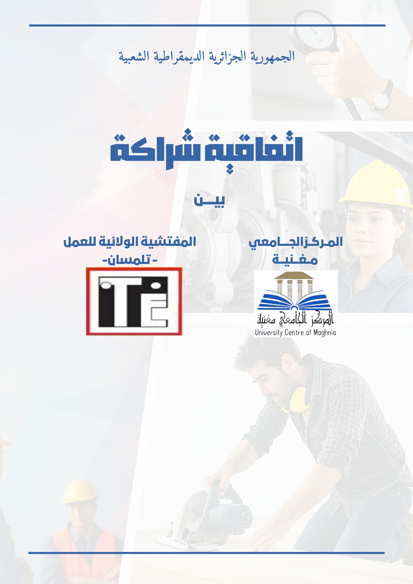 يسعدنا الإعلان عن توقيع اتفاقية شراكة بين المفتشية الولائية للعمل تلمسان والمركز الجامعي مغنية.