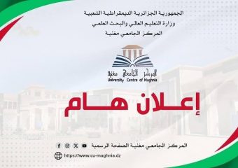 In the name of Allah, the Most Gracious, the Most Merciful, and peace and blessings be upon His Messenger, his family, and all his companions. On behalf of myself, the administrative staff, and the faculty members, it gives us great pleasure to welcome all visitors to the website of the Institute of Humanities and Social Sciences at the University Centre of Maghnia. This platform serves as a vital bridge, bringing together the various members of our university community. The Institute comprises a distinguished faculty across various disciplines, all dedicated to enhancing and developing students' theoretical and practical skills. We would like to note that the Institute offers two undergraduate (Bachelor’s) programs: Sociology and Psychology. Additionally, at the Master’s level, we offer specializations in Sociology of Organization and Work, and Clinical Psychology. We are committed to providing our visitors with comprehensive and constantly updated information regarding the Institute’s offerings, as part of our ongoing efforts to strengthen the link between the university and society.